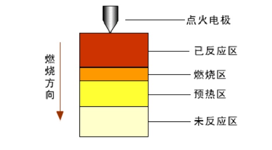 自蔓延的合成過程不易控制,燃燒引發(fā)的反應(yīng)或燃燒波的蔓延相當(dāng)快,一般為0.1~20.0cm/s,最高可達(dá)25.0cm/s,燃燒波溫度或反應(yīng)溫度通常在2100~3500K以上,最高可達(dá)5000K。與傳統(tǒng)制備工藝比較,自蔓延法工藝過程減少,流程縮短,工藝簡(jiǎn)單,無(wú)需消耗額外能量。由于燃燒波通過試樣時(shí)產(chǎn)生的高溫,可將易揮發(fā)雜質(zhì)排除,使產(chǎn)品純度提高。同時(shí)燃燒過程中有較大的熱梯度和較快的冷凝速度,有可能形成復(fù)雜相,易于從一些原料轉(zhuǎn)變?yōu)榱硪环N產(chǎn)品。