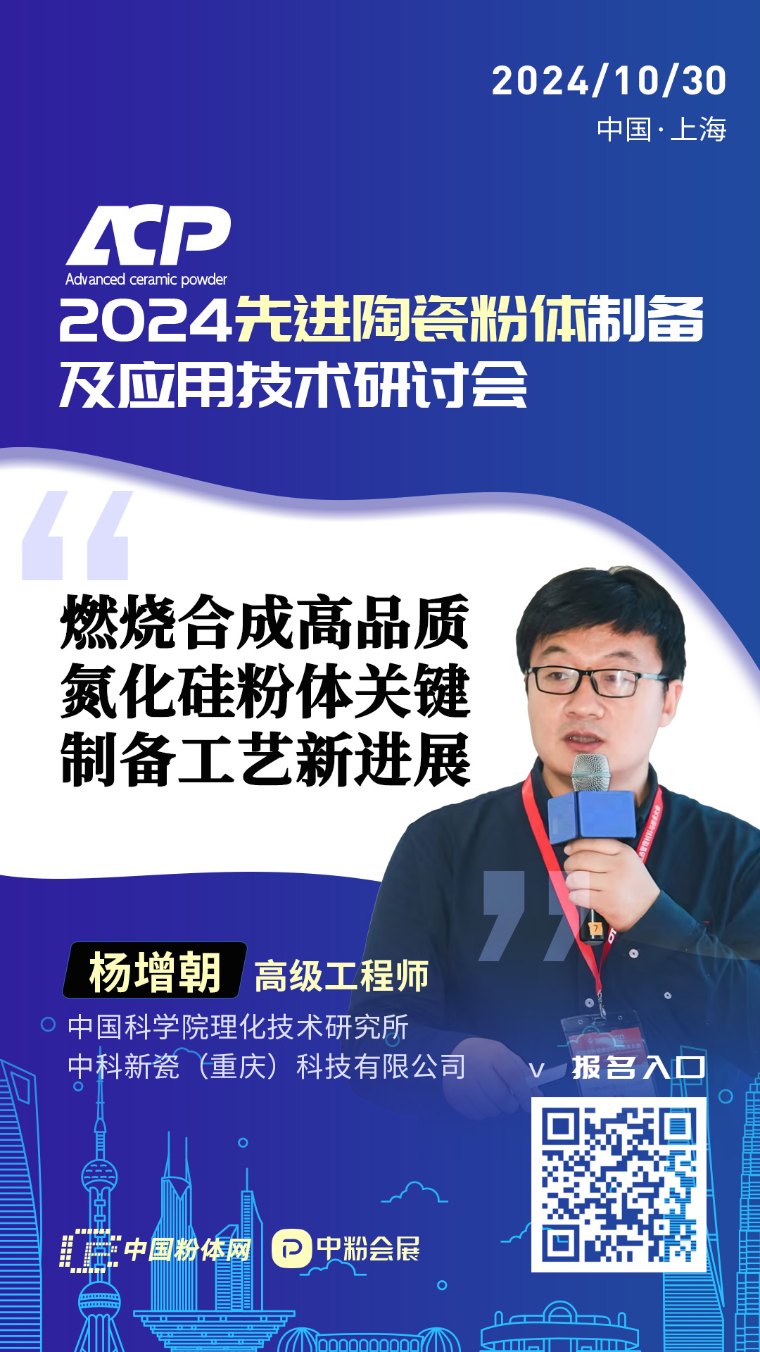 2024年10月29-31日在上?鐕(guó)采購(gòu)會(huì)展中心,由北京粉體技術(shù)協(xié)會(huì)與柏德英思展覽(上海)有限公司聯(lián)合主辦“2024先進(jìn)陶瓷粉體制備及應(yīng)用技術(shù)研討會(huì)”,中國(guó)科學(xué)院理化技術(shù)研究所/中科新瓷(重慶)科技有限公司高級(jí)工程師楊增朝將帶來《燃燒合成高品質(zhì)氮化硅粉體關(guān)鍵制備工藝新進(jìn)展》的報(bào)告。將帶您了解氮化硅陶瓷燃燒合成中試及產(chǎn)業(yè)化技術(shù)進(jìn)展以及在氮化硅陶瓷粉體制備工藝創(chuàng)新及一致性評(píng)價(jià)方面的工作進(jìn)展。
