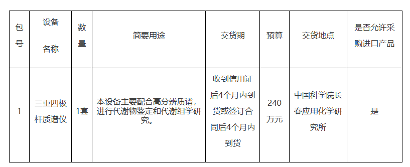 項目名稱:中國科學院長春應(yīng)用化學研究所國家電化學與光譜研究分析中心之三重四極桿質(zhì)譜儀采購項目