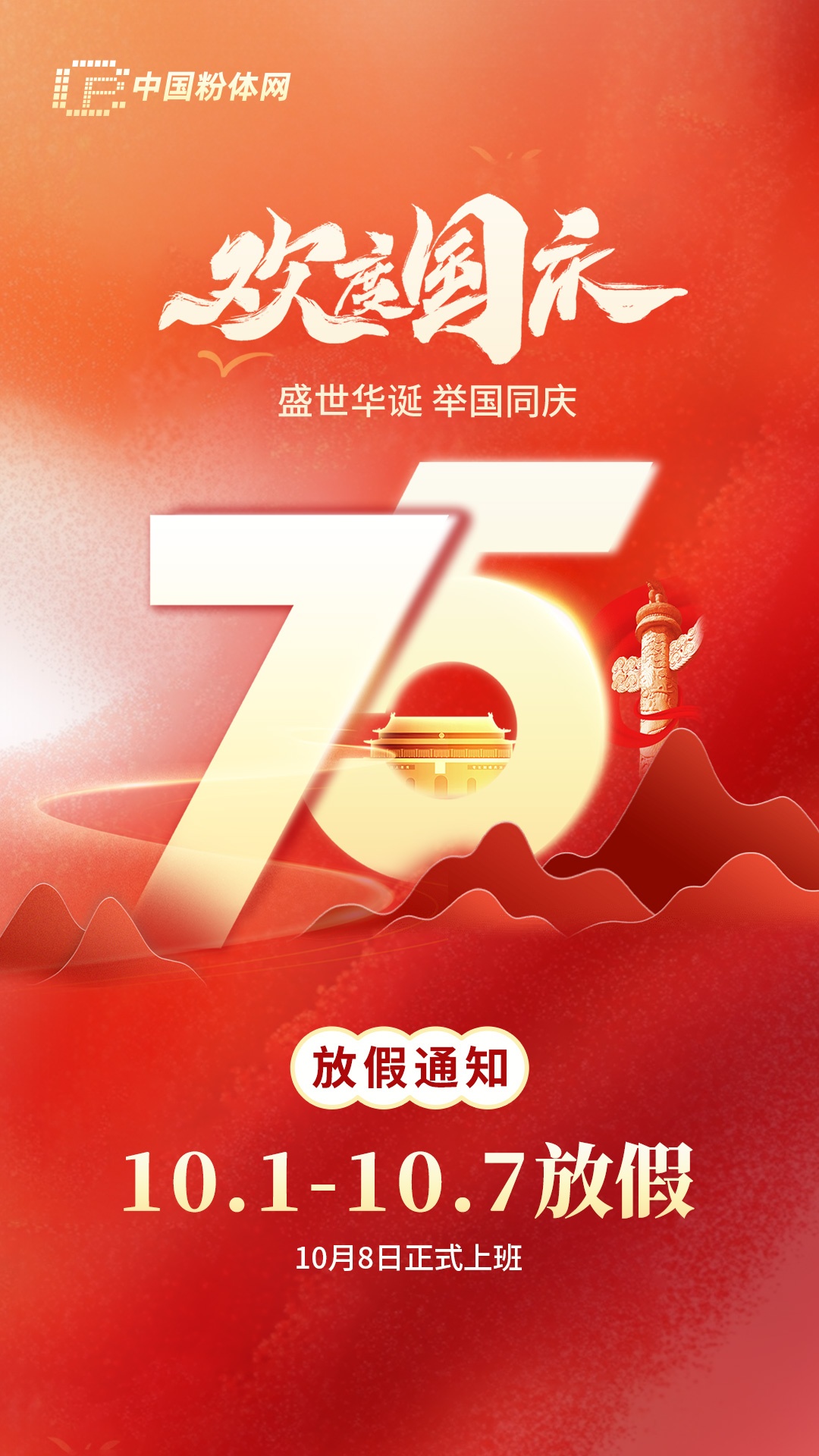 盛世華誕,舉國(guó)歡慶。值國(guó)慶佳節(jié)來臨之際,中國(guó)粉體網(wǎng)全體員工祝大家節(jié)日快樂!