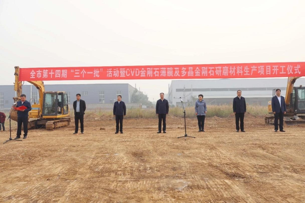 中國粉體網(wǎng)訊 10月8日上午,河南平頂山市第十四期“三個(gè)一批”活動(dòng)暨CVD金剛石薄膜及多晶金剛石研磨材料生產(chǎn)項(xiàng)目開工儀式舉行。市委常委、郟縣縣委書記王景育,市人大常委會(huì)副主任李玉潔,縣領(lǐng)導(dǎo)喬東濤、李林、楊兆華、姚燦鋒出席儀式,并為項(xiàng)目奠基培土。