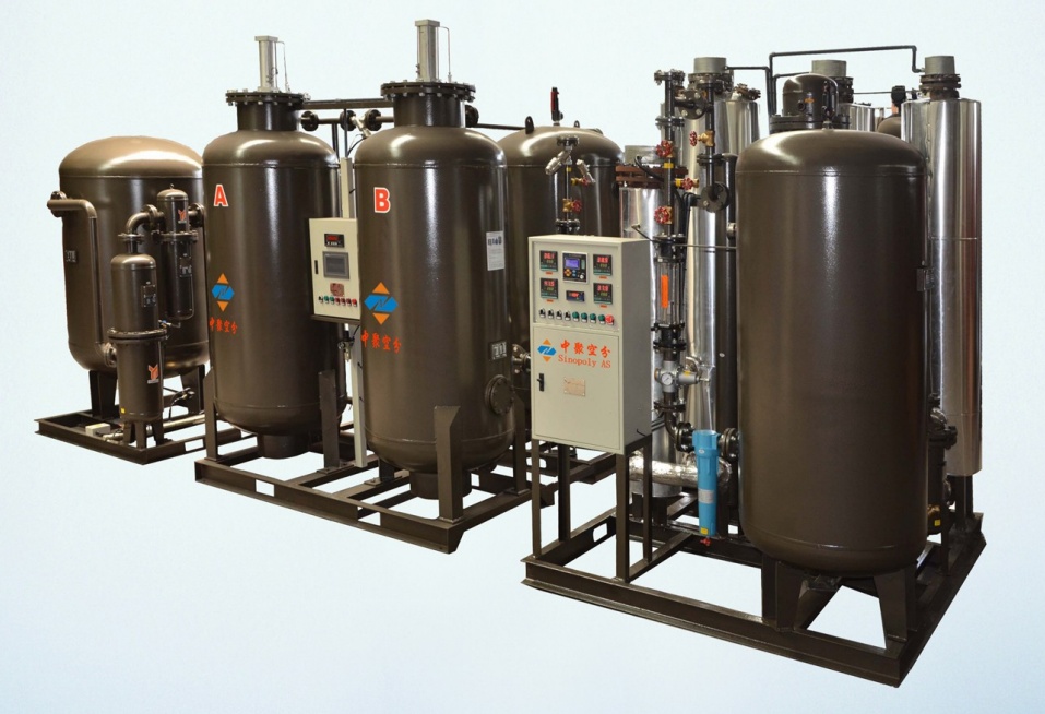 變壓吸附制氧設(shè)備是采用沸石分子篩為吸附劑,利用變壓吸附原理來(lái)獲取氧氣的設(shè)備。在一定的壓力下,利用空氣中氮在沸石分子篩表面的選擇吸附特性,即沸石分子篩對(duì)氮的吸附量遠(yuǎn)遠(yuǎn)大于氧,通過(guò)PLC進(jìn)行工藝程序控制氣動(dòng)閥的啟閉,達(dá)到A、B兩或多塔塔交替循環(huán),一塔加壓吸附產(chǎn)氧、一塔減壓脫附再生的過(guò)程,完成氧氮分離,得到所需純度的合格氧氣。