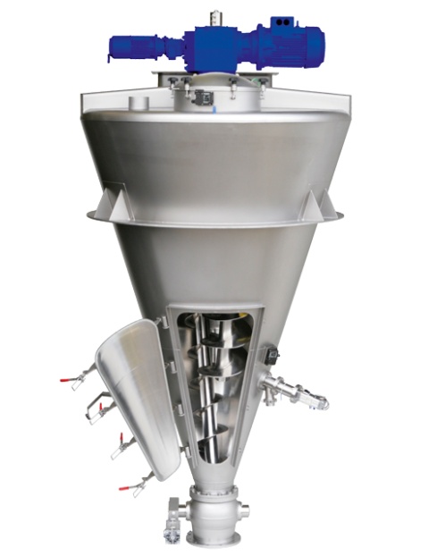 NAUTA® 錐形螺旋混合機(jī)是一種混合效率很高的對流混合機(jī)。其混合方式為柔性,既能確保較高的混合效率,也能保證無產(chǎn)品變形。螺桿平均轉(zhuǎn)速為70rom,同時轉(zhuǎn)臂以1至2rpm轉(zhuǎn)速旋轉(zhuǎn)。螺旋葉尖轉(zhuǎn)速在0.5和2m/s之間波動,適用于所有ATEX區(qū)域。旋轉(zhuǎn)懸臂式混合螺旋可將產(chǎn)品從容器底部傳遞至產(chǎn)品表面;旌下菪龖抑糜谲壍缿冶凵,沿錐形容器內(nèi)壁旋轉(zhuǎn),從而實(shí)現(xiàn)顆粒和切粒的對流混合。當(dāng)顆粒由于重力作用在錐形容器中再循環(huán)時,降低容器直徑可提高向下質(zhì)量流中顆粒的速度。這些同步作用實(shí)現(xiàn)了快速、高強(qiáng)度混合效果,目功率消耗低、混合精度高。