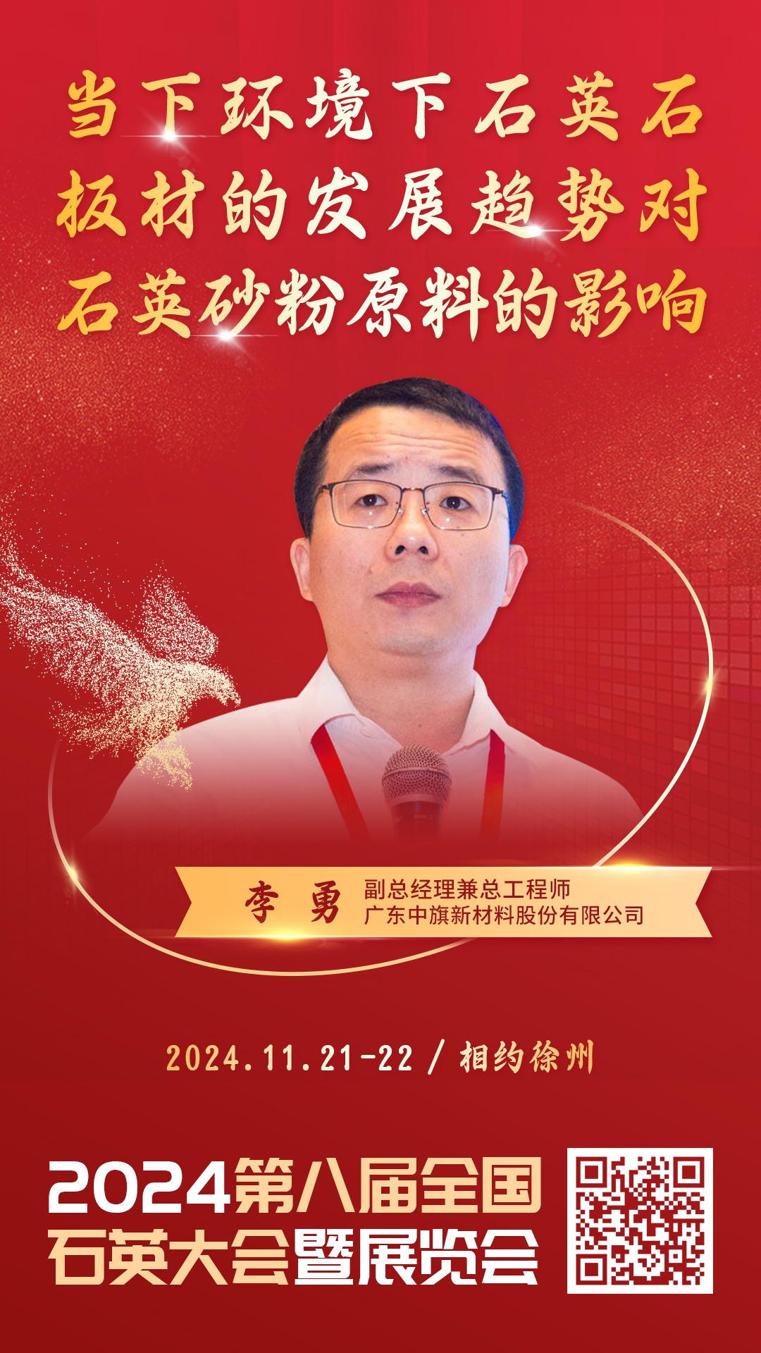 2024年11月21-22日,由中國粉體網(wǎng)主辦的“2024(第八屆)全國石英大會(huì)暨展覽會(huì)”將在江蘇徐州召開,廣東中旗新材料股份有限公司副總經(jīng)理兼總工程師李勇將做《當(dāng)下環(huán)境下石英石板材的發(fā)展趨勢對石英砂粉原料的影響》的報(bào)告,敬請期待!