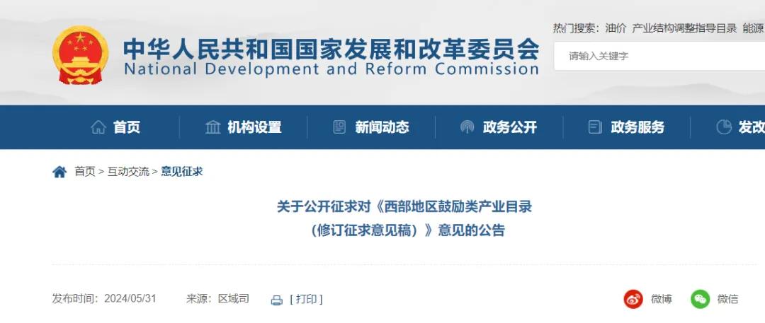 《西部地區(qū)鼓勵類產(chǎn)業(yè)目錄(修訂征求意見稿)》