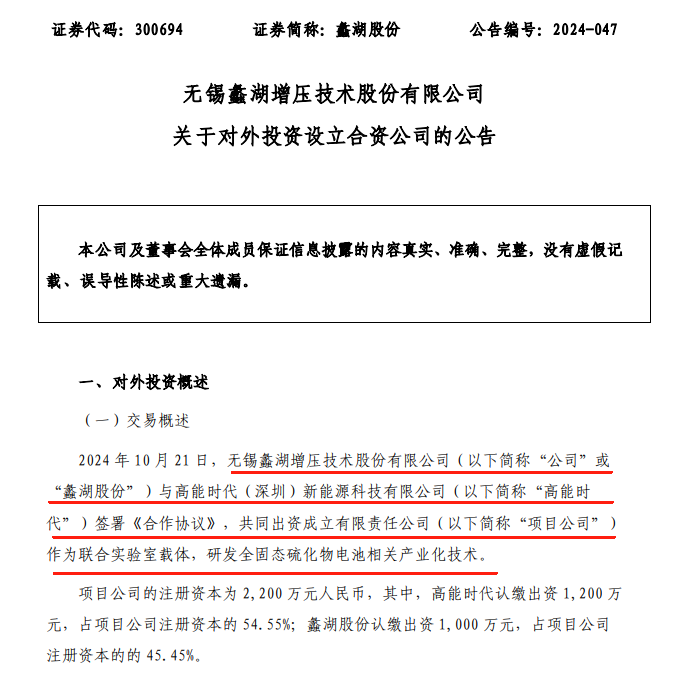 蠡湖股份關(guān)于對(duì)外投資設(shè)立合資公司的公告、高能時(shí)代官網(wǎng)、官微、證券時(shí)報(bào)、網(wǎng)絡(luò)公開(kāi)信息等