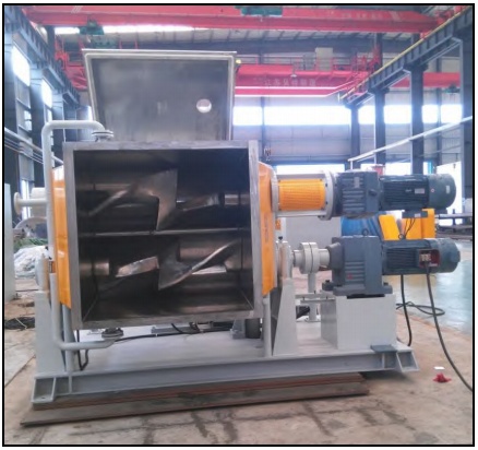 捏合機的料槽通常帶有夾套,可以通導熱油或蒸氣進行加熱。在料槽頂部設(shè)有密封蓋,當需要抽真空時,應(yīng)蓋緊并接入抽真空系統(tǒng)。