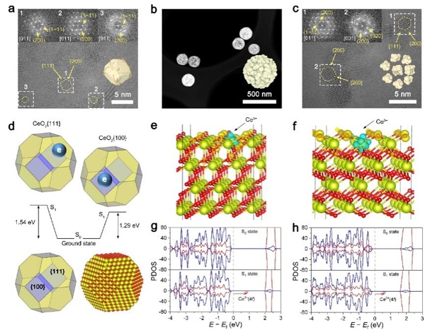 中國科學技術大學曾杰教授團隊在單原子催化的晶面效應研究中取得重要研究進展。研究人員通過適當的制備方法,在形貌為截角八面體的二氧化鈰最小結構單元上實現了鉑在不同晶面上的定向原子沉積。常規(guī)的浸漬法制備使鉑原子位于八面體側邊占主要暴露的(111)晶面上,而紫外光沉積則使鉑原子穩(wěn)定在截角八面體頂端(100)晶面形成的“納米口袋”中。不同晶面上的鉑單原子展現出迥異的一氧化碳催化氧化性能,其關鍵影響因素在于不同二氧化鈰晶面上鉑單原子所處的不同鉑-氧配位環(huán)境。