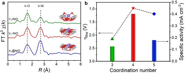 中國科學技術大學曾杰教授研究團隊研究發(fā)現氧化鎳負載的銥單原子催化劑在陽極水氧化反應中的活性和銥單原子的第二殼層銥-氧-鎳配位數呈火山型關系。