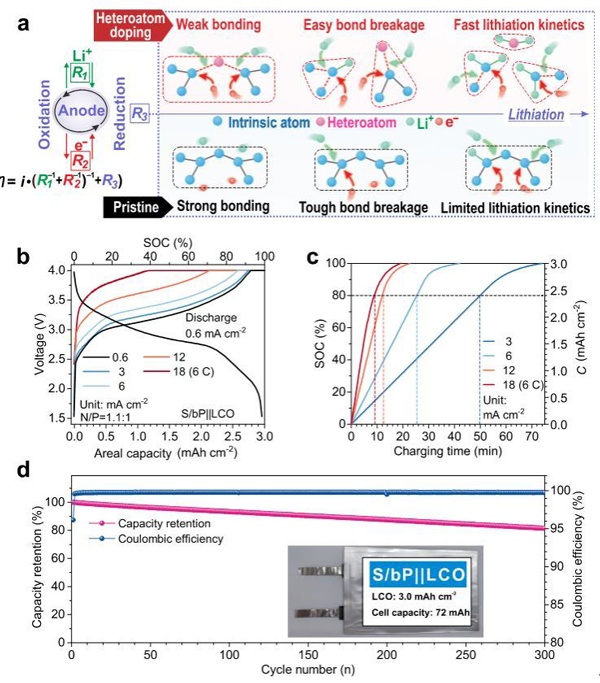 國科學技術大學季恒星教授、武曉君教授團隊聯(lián)合加州理工洛杉磯分校段鑲鋒教授團隊,在快充型鋰離子電池領域取得突破性進展。研究人員成功突破傳統(tǒng)意義上固/液、固/氣等兩相界面上的電催化模型,實現了一種全新的“固相電催化”,并成功將該策略應用于純固相反應的負極材料中,從而實現了鋰離子電池在達到302 Wh kg-1高能量密度的同時實現9 min充電至80%。