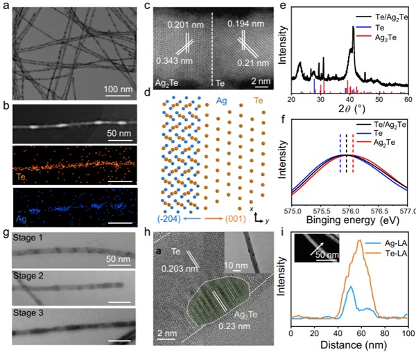 Te/Ag2Te一維分段異質納米結構的形貌和結構表征。
