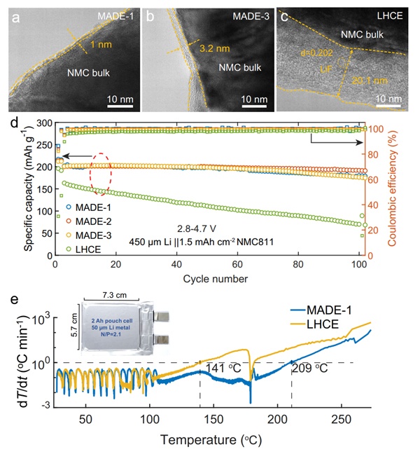 中國科學技術大學化學與材料科學學院、合肥微尺度物質科學國家研究中心任曉迪教授團隊聯(lián)合火災科學國家重點實驗室王青松教授團隊,研究發(fā)現利用分子間氫鍵的相互作用可以顯著改善醚基電解液在電極界面的穩(wěn)定性,并有效抑制鋰金屬電池熱失控過程。