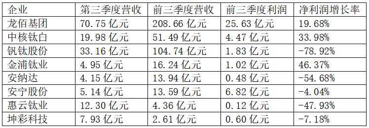 各公司三季度年報(bào)、粉體網(wǎng)、鈦資訊等