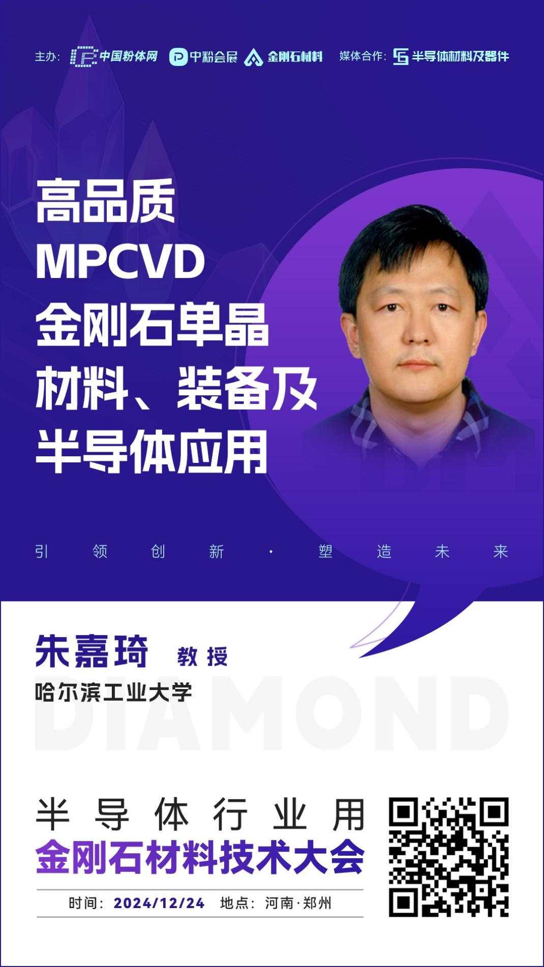 2024年12月24日,中國(guó)粉體網(wǎng)將在河南·鄭州舉辦“2024半導(dǎo)體行業(yè)用金剛石材料技術(shù)大會(huì)”。屆時(shí),我們邀請(qǐng)到哈爾濱工業(yè)大學(xué)朱嘉琦教授出席本次大會(huì)并作題為《高品質(zhì)MPCVD金剛石單晶材料、裝備及半導(dǎo)體應(yīng)用》的報(bào)告。本報(bào)告將介紹金剛石合成方法及原理,MPCVD金剛石合成裝備、高質(zhì)量金剛石晶體材料合成工藝、金剛石半導(dǎo)體器件應(yīng)用等內(nèi)容,并給出發(fā)展展望。