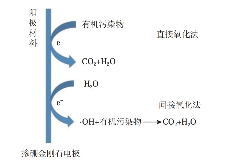 摻硼金剛石電極處理污水示意圖