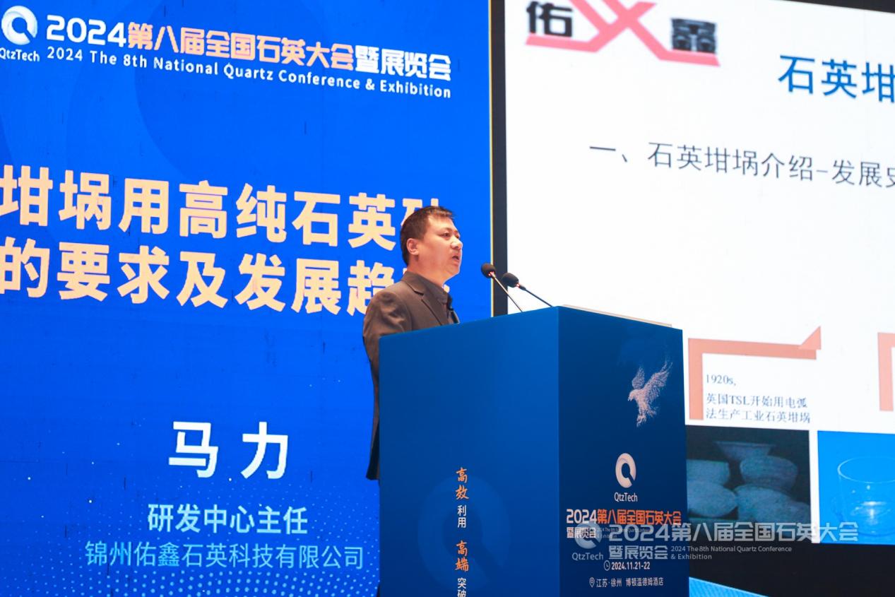 錦州佑鑫石英科技有限公司研發(fā)中心主任馬力作《坩堝用高純石英砂的要求及發(fā)展趨勢》報告