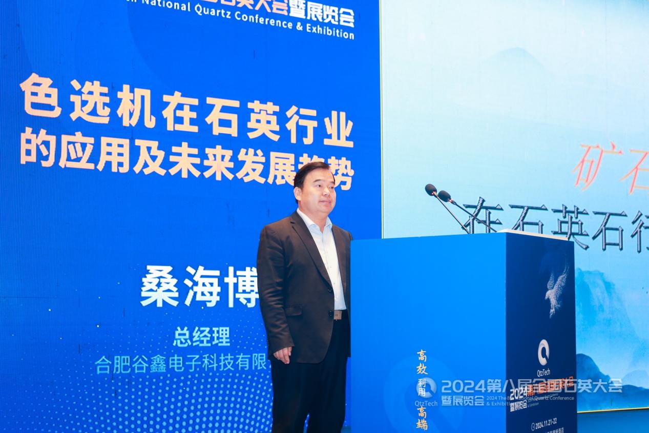 合肥谷鑫電子科技有限公司總經(jīng)理桑海博作《色選機在石英行業(yè)的應(yīng)用及未來發(fā)展趨勢》報告