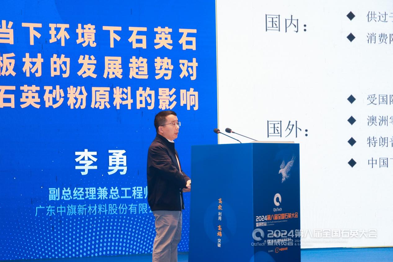 廣東中旗新材料股份有限公司副總經(jīng)理兼總工程師李勇作《當下環(huán)境下石英石板材的發(fā)展趨勢對石英砂粉原料的影響》報告