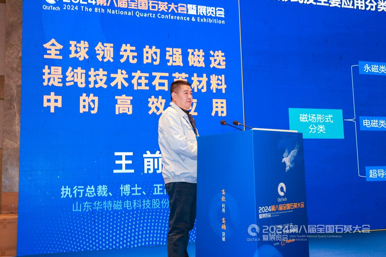 山東華特磁電科技股份有限公司營銷中心副總經(jīng)理付有良(代)執(zhí)行總裁/博士/正高級工程師王前作《全球領(lǐng)先的強磁選提純技術(shù)在石英材料中的高效應(yīng)用》報告
