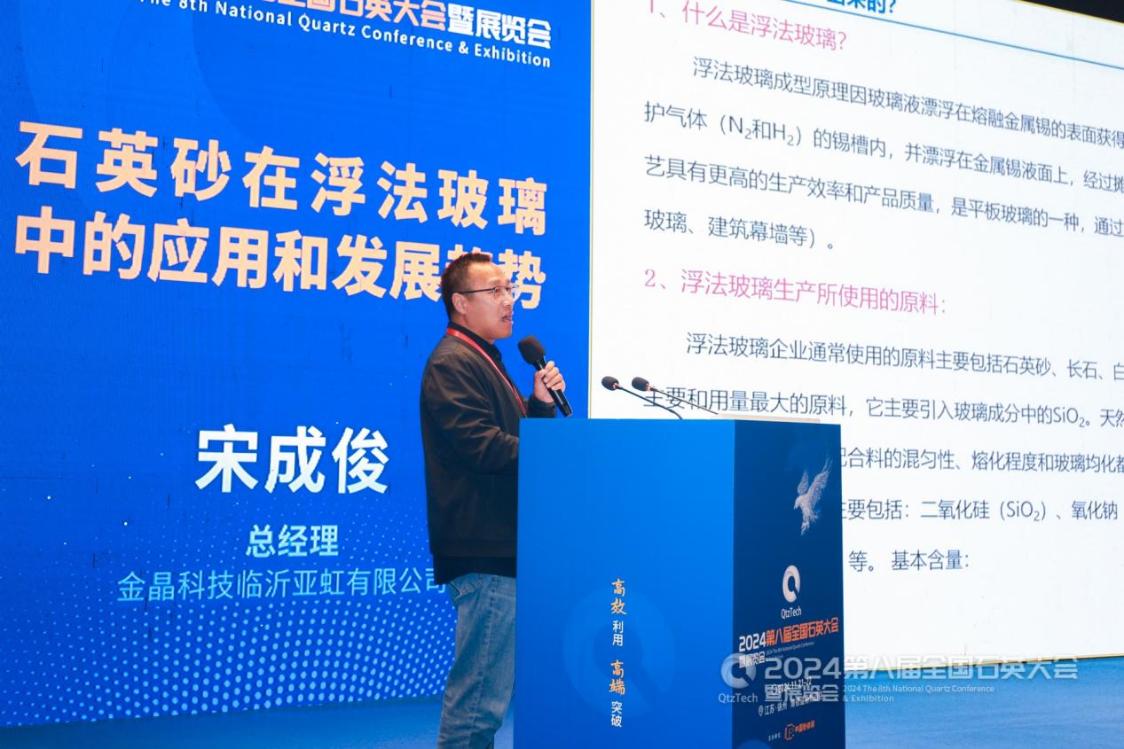 金晶科技臨沂亞虹有限公司總經(jīng)理宋成俊作《石英砂在浮法玻璃中的應(yīng)用和發(fā)展趨勢》報告