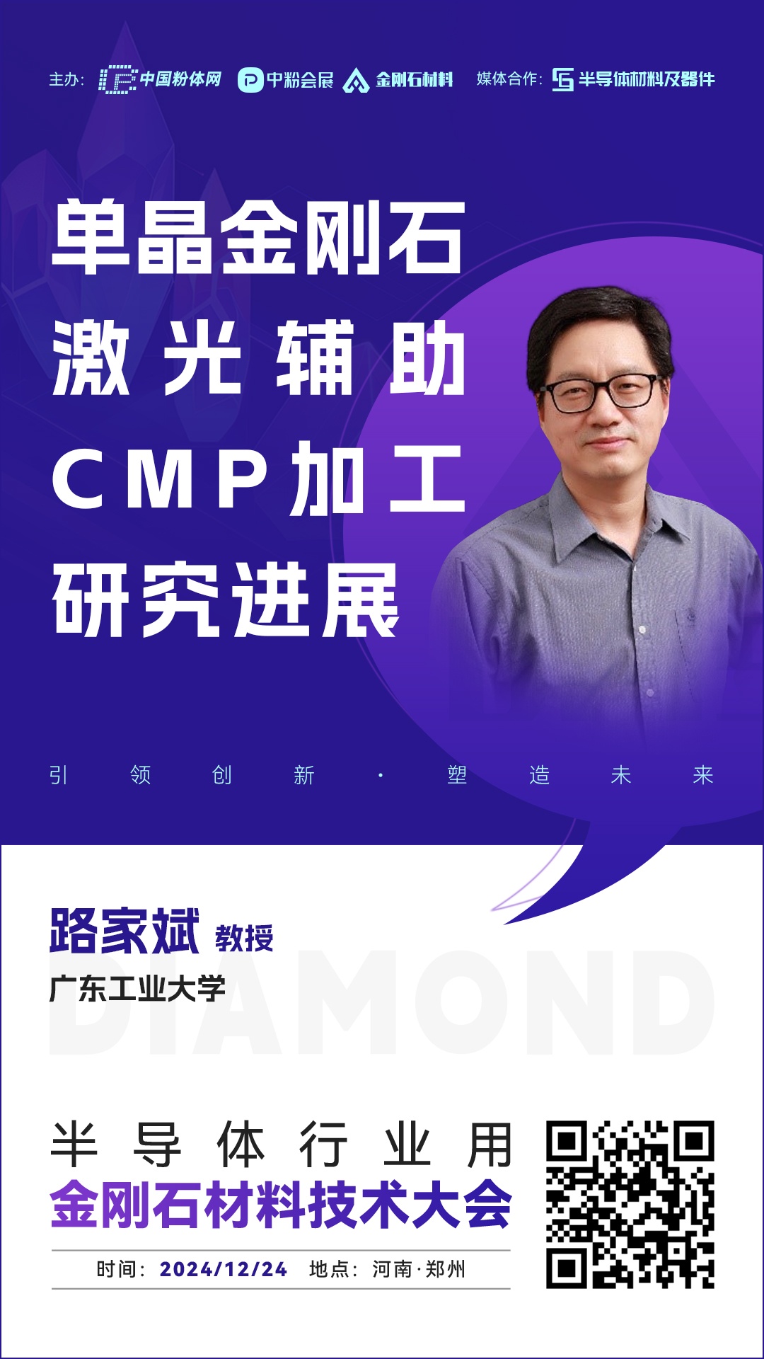 2024年12月24日,中國粉體網(wǎng)將在河南·鄭州舉辦“2024半導(dǎo)體行業(yè)用金剛石材料技術(shù)大會(huì)”。屆時(shí),我們邀請到廣東工業(yè)大學(xué)路家斌教授出席本次大會(huì)并作題為《單晶金剛石激光輔助CMP加工研究進(jìn)展》的報(bào)告,路家斌教授將通過激光燒蝕熱效應(yīng)、紫外光催化協(xié)同芬頓反應(yīng),揭示單晶金剛石CMP加工的材料去除機(jī)理,以優(yōu)化CMP加工參數(shù),實(shí)現(xiàn)單晶金剛石高效率、高質(zhì)量拋光。