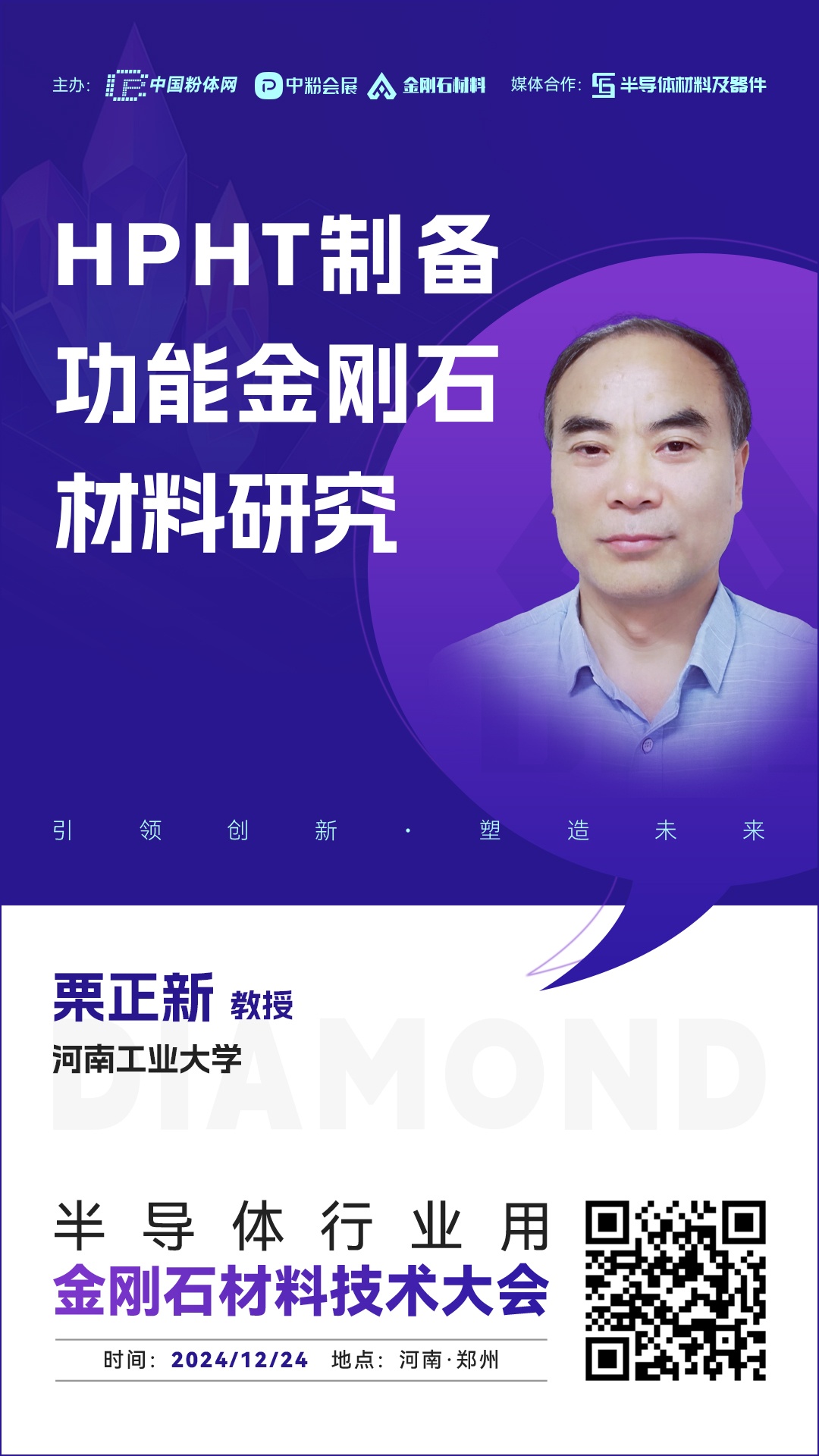 2024年12月24日,中國(guó)粉體網(wǎng)將在河南·鄭州舉辦“2024半導(dǎo)體行業(yè)用金剛石材料技術(shù)大會(huì)”。屆時(shí),我們邀請(qǐng)到河南工業(yè)大學(xué)教授栗正新出席本次大會(huì)并作題為《HPHT制備功能金剛石材料研究》的報(bào)告,栗正新教授將為您具體介紹HPHT在制備大尺寸單晶、多晶、BDD和鉆-銅導(dǎo)熱材料等方面的研究現(xiàn)狀與趨勢(shì)。