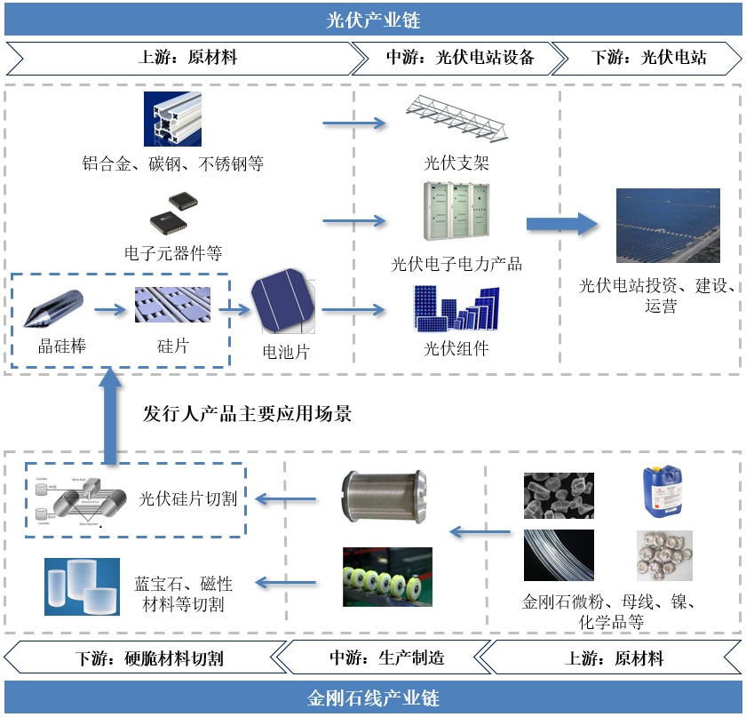 需求決定價(jià)值。光伏產(chǎn)業(yè)鏈主要包括硅料、硅片、晶硅電池片、光伏組件、光伏發(fā)電系統(tǒng)5個(gè)環(huán)節(jié),硅片和硅料占40%左右的光伏組件成本。目前,硅片的切割已經(jīng)和金剛石線深度綁定,金剛石線也直接會影響硅片的質(zhì)量及光伏組件的光電轉(zhuǎn)換性能。