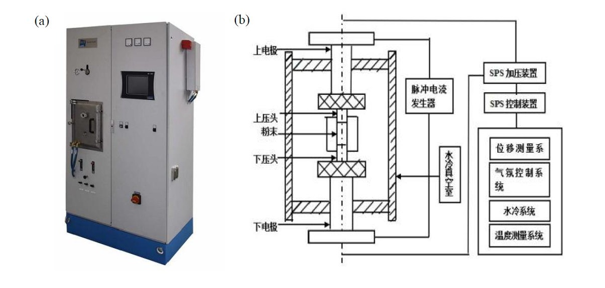SPS燒結(jié)裝置(a)外部(b)內(nèi)部示意圖