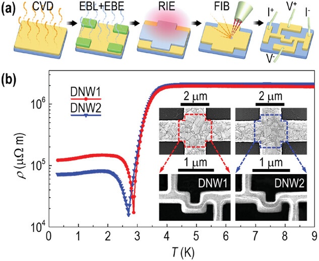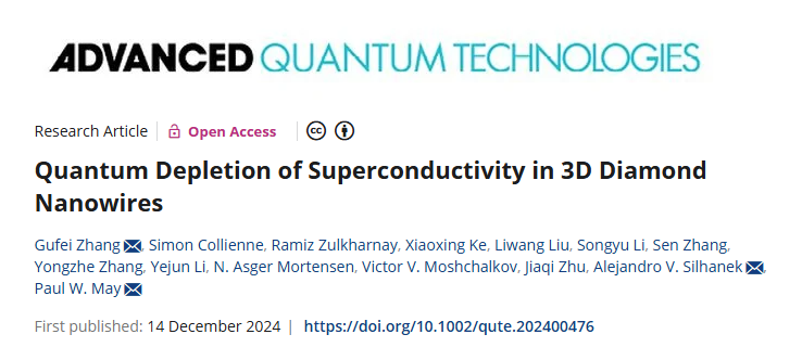 中國粉體網(wǎng)訊 近日,由哈爾濱工業(yè)大學(xué)、比利時列日大學(xué)、英國布里斯托大學(xué)、北京工業(yè)大學(xué)、比利時魯汶大學(xué)、中南大學(xué)和丹麥高等研究院的研究人員組成的國際科研團(tuán)隊,在三維超導(dǎo)多晶金剛石納米線中發(fā)現(xiàn)與量子相滑移相關(guān)的重入電阻態(tài)。相關(guān)成果以“Quantum Depletion of Superconductivity in Three-Dimensional Diamond Nanowires”為題發(fā)表在量子領(lǐng)域旗艦期刊《Advanced Quantum Technologies》上。