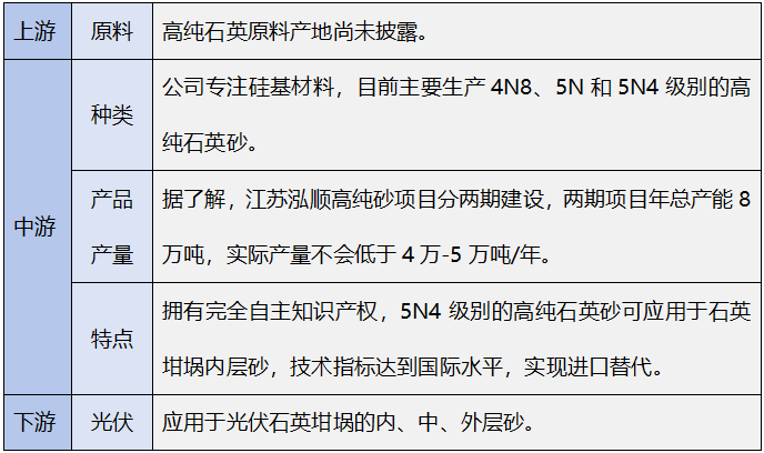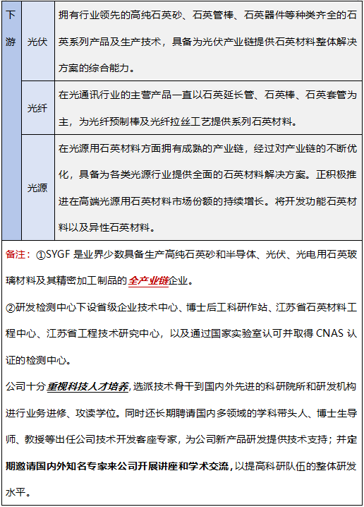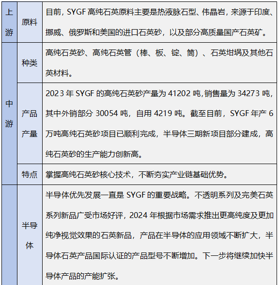 SYGF之外各大企業(yè)石英產(chǎn)業(yè)鏈布局情況