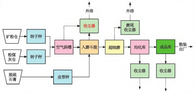 超細(xì)復(fù)合礦物摻合料的生產(chǎn)工藝流程圖