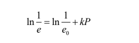 式中,e0,e分別為粉體自然狀態(tài)下的空隙率與壓力為P時的空隙率,k為常數(shù),可以用來衡量粉體的可壓縮性。Heckel方程是藥物粉體壓縮領(lǐng)域中常用的經(jīng)驗公式,用于描述粉體的相對密度與施加壓力的變化關(guān)系。但有關(guān)文獻指出,在較低壓力和較高壓力下,該方程存在一定誤差,只有在中間壓力階段呈線性關(guān)系。