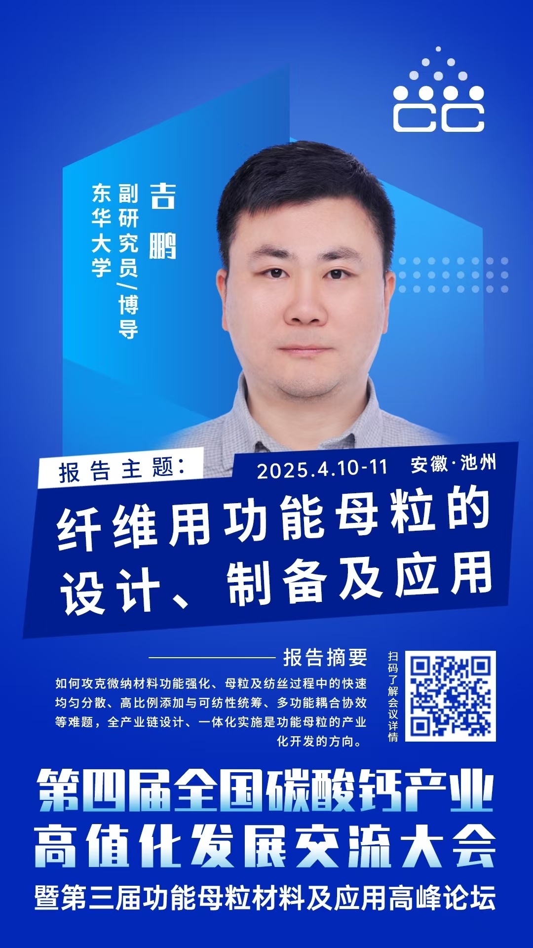 如何攻克微納材料功能強(qiáng)化、色母粒及紡絲過程中的快速均勻分散、高比例添加與可紡性統(tǒng)籌、多功能耦合協(xié)效等難題,全產(chǎn)業(yè)鏈設(shè)計、一體化實施是功能色母粒的產(chǎn)業(yè)化開發(fā)的方向。2025年4月10-11日,由中國粉體網(wǎng)主辦的第四屆全國碳酸鈣產(chǎn)業(yè)高值化發(fā)展交流大會將在安徽·池州舉行,屆時東華大學(xué)副研究員吉鵬將在大會上作《纖維用功能母粒的設(shè)計、制備及應(yīng)用》主題報告,從全產(chǎn)業(yè)鏈設(shè)計、一體化實施的角度講解纖維用功能母粒相關(guān)的技術(shù)成果和應(yīng)用案例。