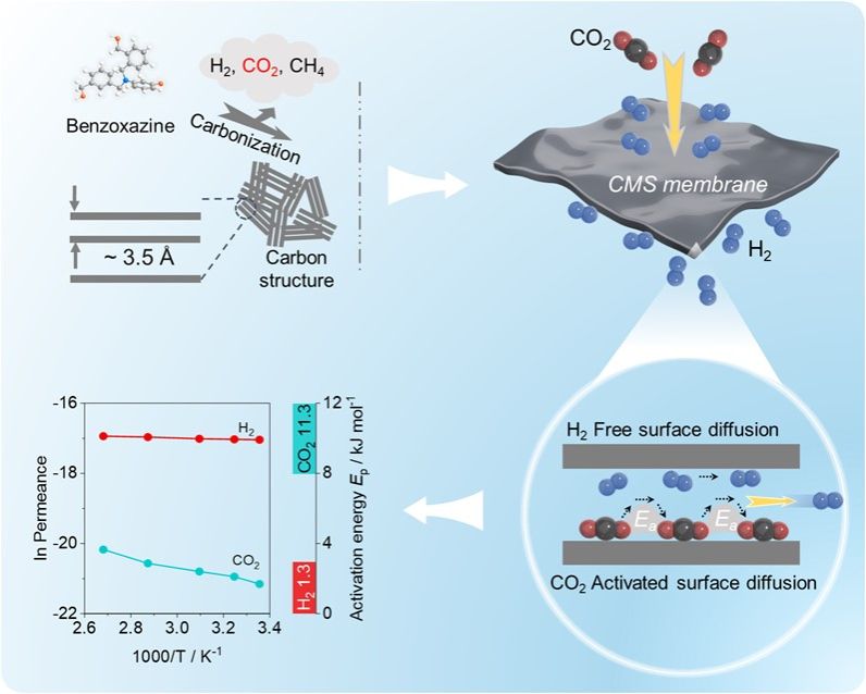 通過放大氫/二氧化碳的擴散差實現(xiàn)高效的氫/二氧化碳分離在碳分子篩膜中
