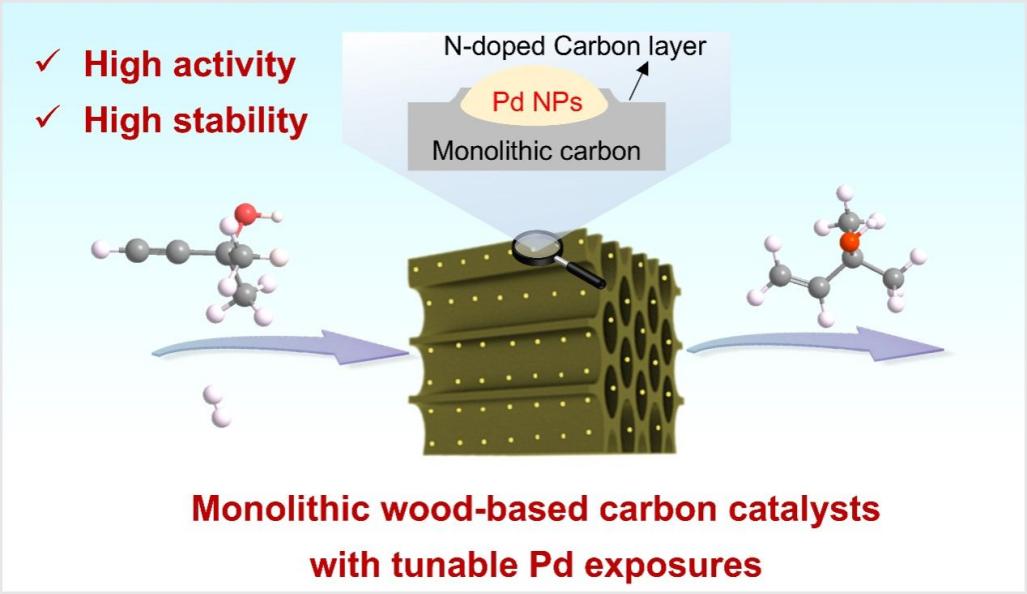 單片木基碳負載的Pd納米顆粒,可調諧曝光促進炔醇的半氫化