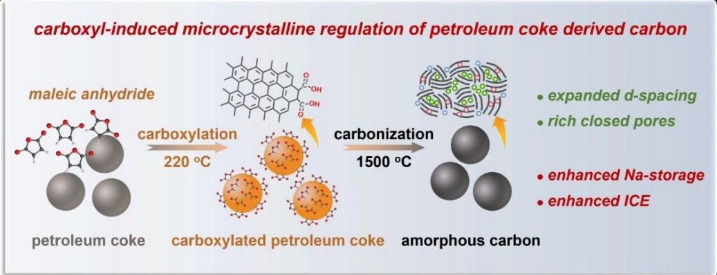羧基誘導的石油焦基碳負極微晶調控增強鈉儲存的材料