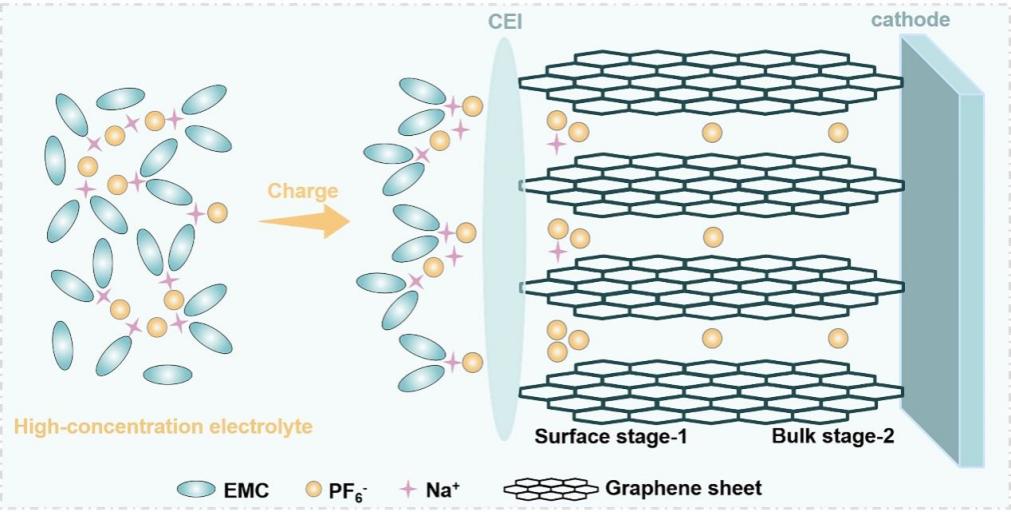 PF6-和Na+共嵌入鈉雙離子電池的石墨陰極增強的表面集中效果