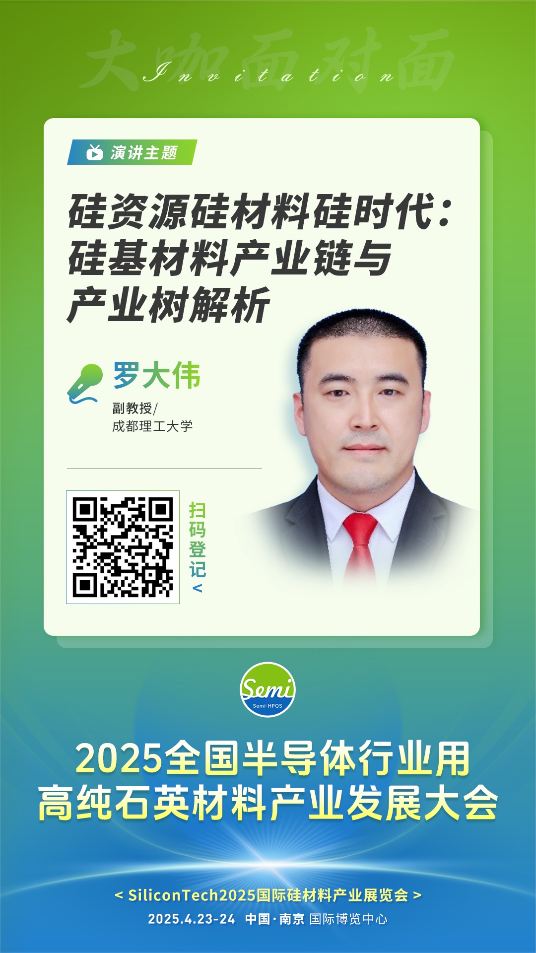 可以說,雖然硅在物質(zhì)世界中已經(jīng)到處都是,但它依然還可以開發(fā)出千千萬萬的用途,造福人類、造福世界。2025年4月23-24日,由中國粉體網(wǎng)、中粉會展主辦的“2025全國半導(dǎo)體行業(yè)用高純石英材料產(chǎn)業(yè)發(fā)展大會”將在江蘇南京召開,屆時來自成都理工大學(xué)的羅大偉副教授將做題為《硅資源硅材料硅時代:硅基材料產(chǎn)業(yè)鏈與產(chǎn)業(yè)樹解析》的報告。