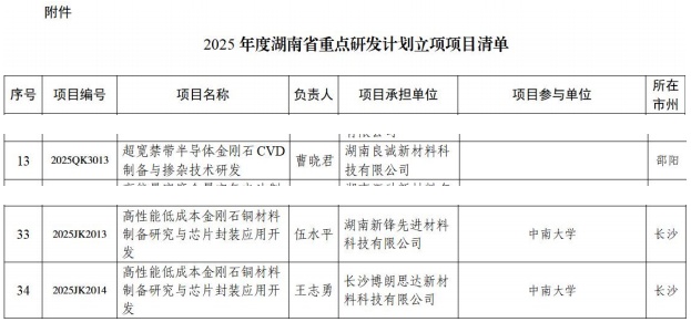 湖南:三個(gè)超硬材料項(xiàng)目入選湖南省重點(diǎn)研發(fā)計(jì)劃