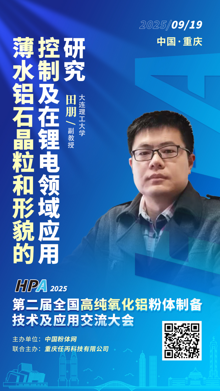 為了研究形貌和晶粒尺寸對(duì)薄水鋁石作為填料在鋰電池隔膜填料、固態(tài)電解質(zhì)填料上應(yīng)用性能的影響,大連理工大學(xué)田朋副教授課題組合成了不同形貌和尺寸的薄水鋁石,并將其用于鋰電池領(lǐng)域,以弄清相應(yīng)的構(gòu)效關(guān)系。9月19日,中國(guó)粉體網(wǎng)將在中國(guó)·重慶舉辦2025全國(guó)高純氧化鋁粉體制備技術(shù)及應(yīng)用交流大會(huì)。屆時(shí),田朋副教授將蒞臨大會(huì)并作題為《薄水鋁石晶粒和形貌的控制及在鋰電領(lǐng)域應(yīng)用研究》的報(bào)告。
