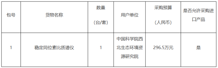 項目名稱:中國科學院西北生態(tài)環(huán)境資源研究院穩(wěn)定同位素比質(zhì)譜儀采購項目