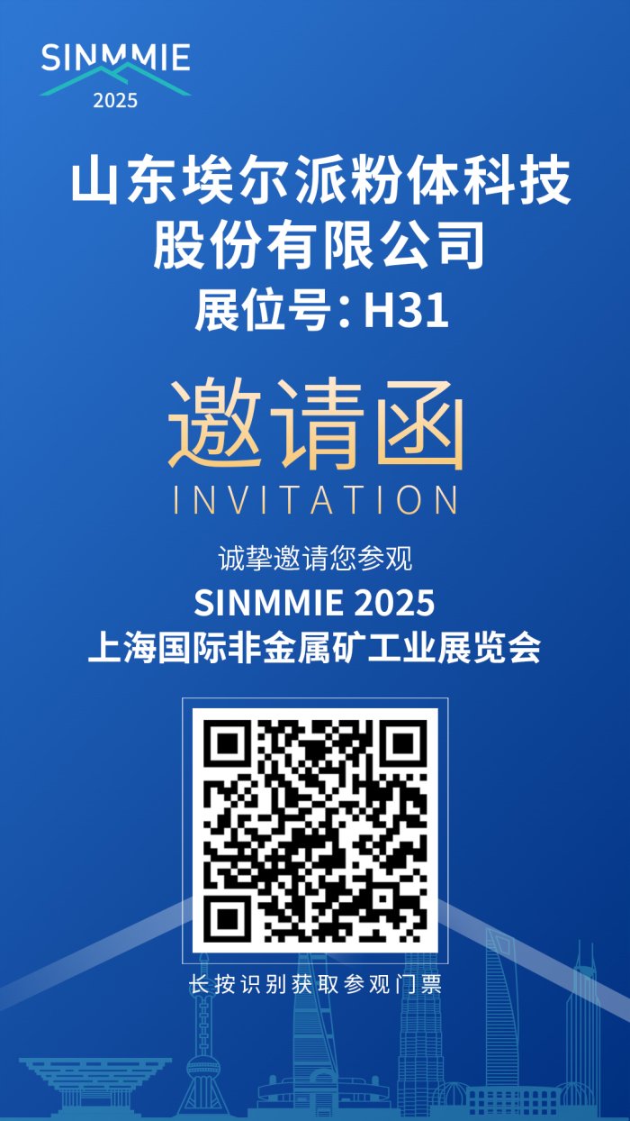 上海國際非金屬礦工業(yè)展覽會(SINMMIE2025)將于2025年10月29-31日在上海跨國采購會展中心舉辦,埃爾派邀請您共同出席。