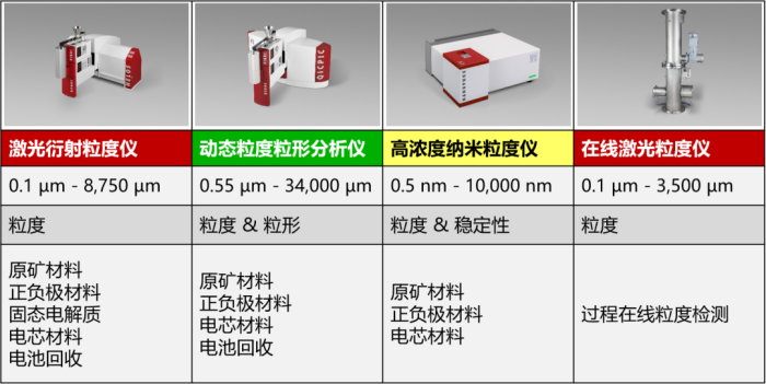 儀器測試范圍從0.5 nm到33,792 µm,覆蓋激光衍射法、動態(tài)圖像法、光子交叉相關(guān)光譜法、超聲衰減法多種測試方法。