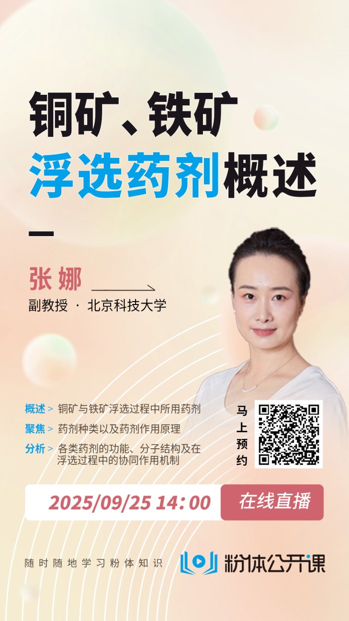 中國(guó)粉體網(wǎng)訊 在礦產(chǎn)資源開發(fā)中,銅礦與鐵礦的高效分離提純離不開浮選藥劑的關(guān)鍵作用,它們是實(shí)現(xiàn)礦物與脈石分離、提升精礦品位的核心技術(shù)支撐。中國(guó)粉體網(wǎng)粉體公開課特邀北京科技大學(xué)張娜副教授帶來精彩課程《銅礦、鐵礦浮選藥劑概述》,歡迎免費(fèi)預(yù)約觀看!