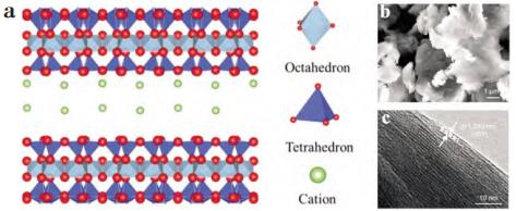 蒙脫土(MMT)是一種具有層狀結(jié)構(gòu)的硅酸鹽礦物,而且在蒙脫土的結(jié)構(gòu)中,由于鋁氧八面體中的高價鋁原子易被低價原子取代,使得片層間帶有一定的負(fù)電荷。為了保持層間結(jié)構(gòu)的穩(wěn)定性,蒙脫土?xí)罩車腘a+、Ca2+、Mg2+、Al3+、K+等陽離子,這種特性使得蒙脫土具有很強(qiáng)的吸附能力和陽離子交換能力。正是這種結(jié)構(gòu)和交換能力,賦予了蒙脫石在新能源領(lǐng)域巨大的發(fā)展?jié)摿Α?/span>
