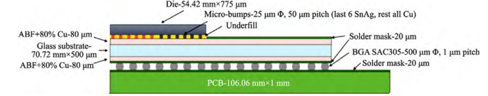基于大尺寸玻璃基板的封裝示意圖 來(lái)源:Surillo.Bayesian optimization of large glass package architecture for system-level reliability in high-performance computing applications