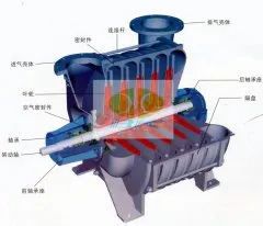 9、冷卻:排氣軸承座有風(fēng)冷和水冷兩種結(jié)構(gòu),由于葉輪對(duì)氣體的逐級(jí)壓縮,造成排氣機(jī)殼溫度遠(yuǎn)高于進(jìn)氣機(jī)殼。在排氣軸承座有風(fēng)冷和水冷裝置,延長(zhǎng)了軸承的使用壽命。