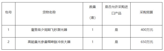 項目名稱:中國科學院新疆理化技術研究所飛秒激光器及脈沖放大器采購項目