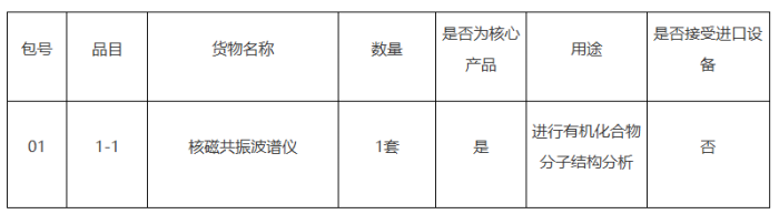 項目名稱:中國科學院大學-化學科學學院-400MHz核磁共振波譜儀采購項目