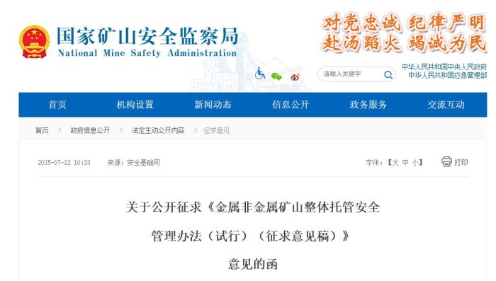 《金屬非金屬礦山整體托管安全管理辦法(試行)(征求意見稿)》